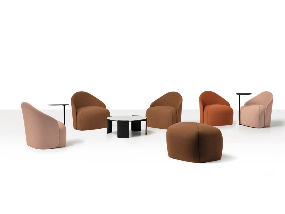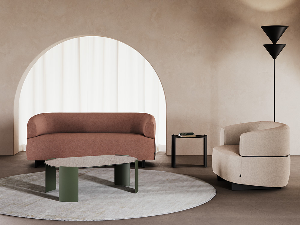 La collection de tables basses Plié anime les espaces d’hospitalité avec une présence harmonieuse et discrète.