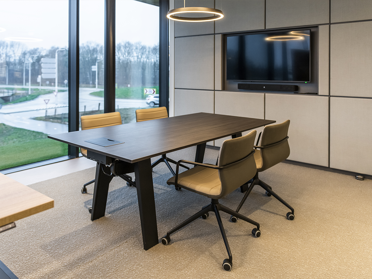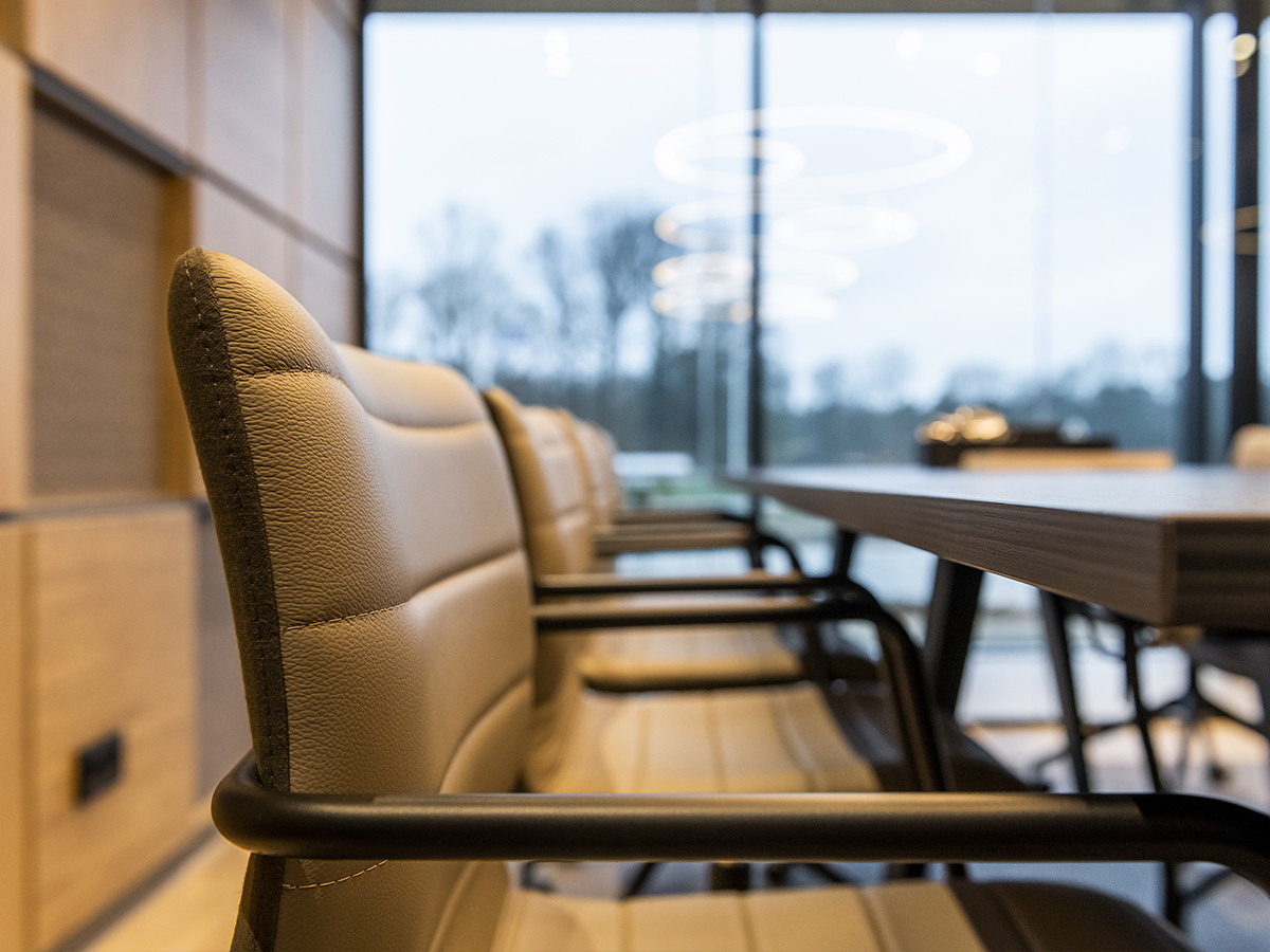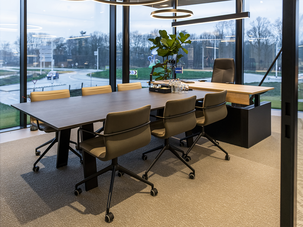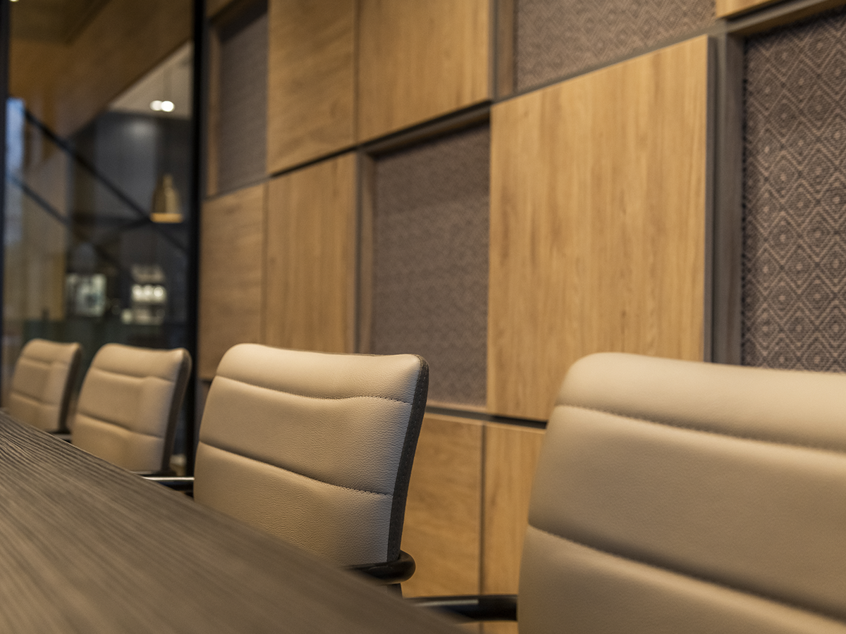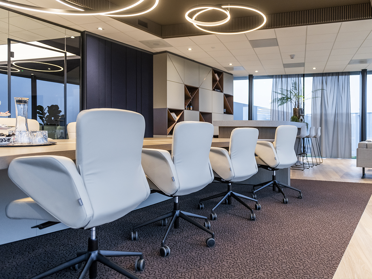 - MISS, più compatta e leggera nelle forme, è stata inserita nelle sale riunioni secondarie adiacenti all’ufficio direzionale. Il suo design essenziale e versatile si adatta perfettamente a un uso quotidiano, favorendo dinamismo e praticità negli incontri operativi, pur mantenendo uno stile sobrio e raffinato.